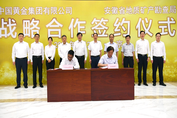 6月20日,安徽省地礦局與中國黃金集團有限公司在北京舉行戰略合作簽約儀式。局黨委書記、局長朱學文,中國黃金集團公司黨委書記、董事長盧進出席儀式并講話,中國黃金集團公司黨委副書記、董事、總經理劉冰主持簽約儀式。局黨委委員、副局長侯其標與中國黃金集團公司副總經理王佐滿代表雙方簽署戰略合作協議。